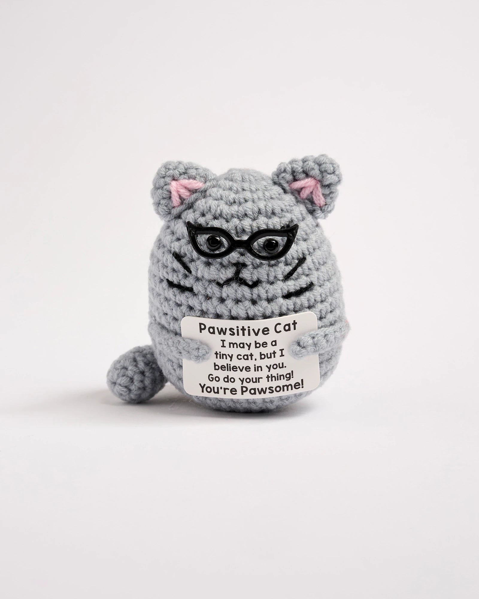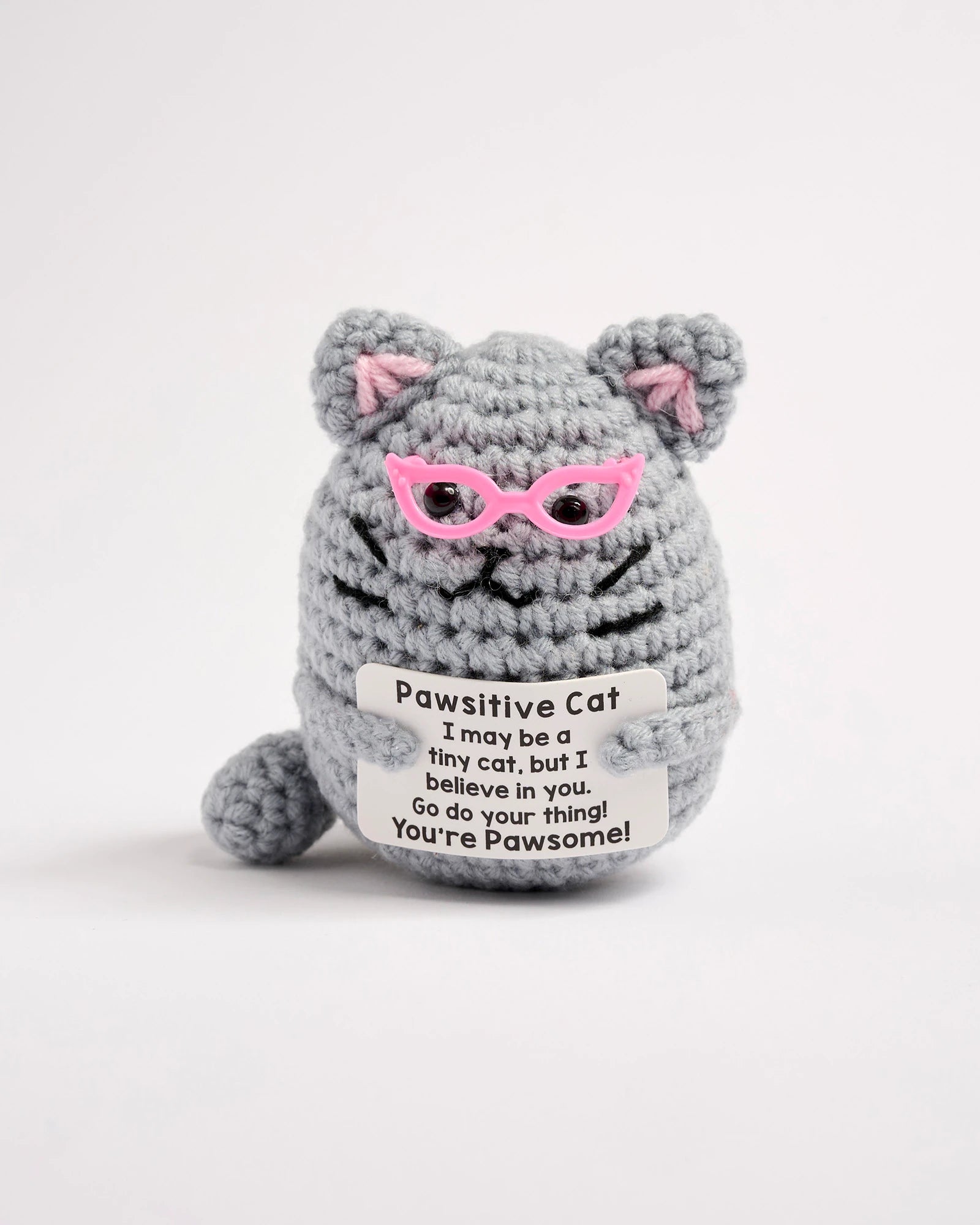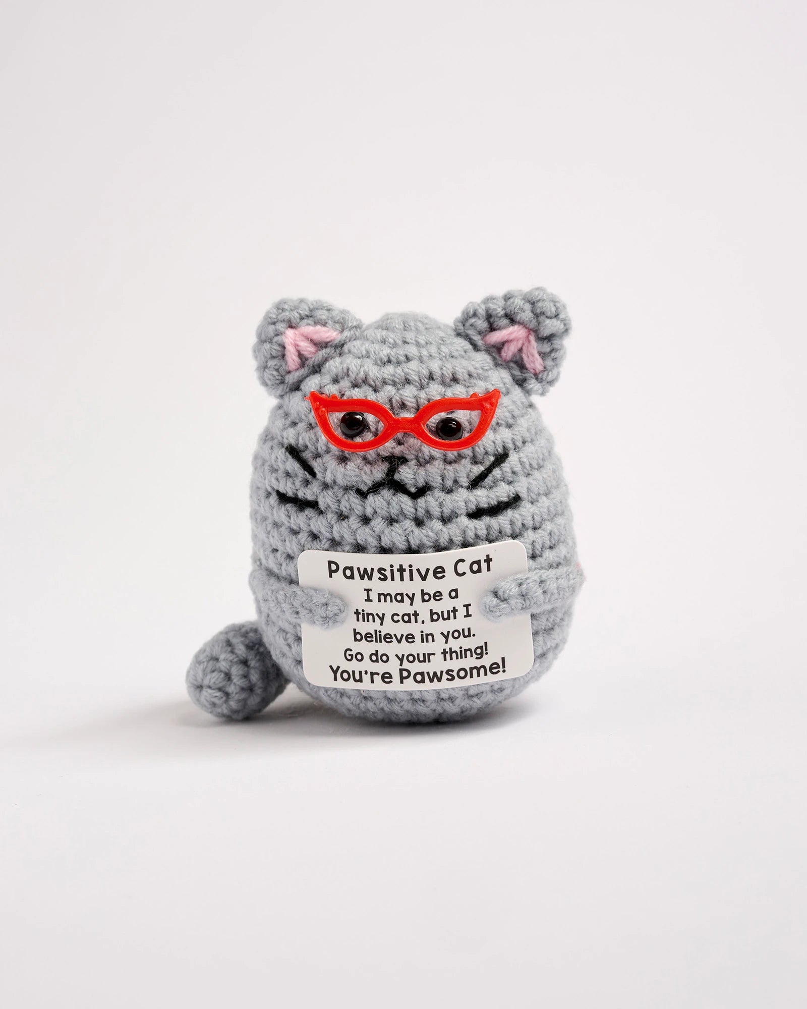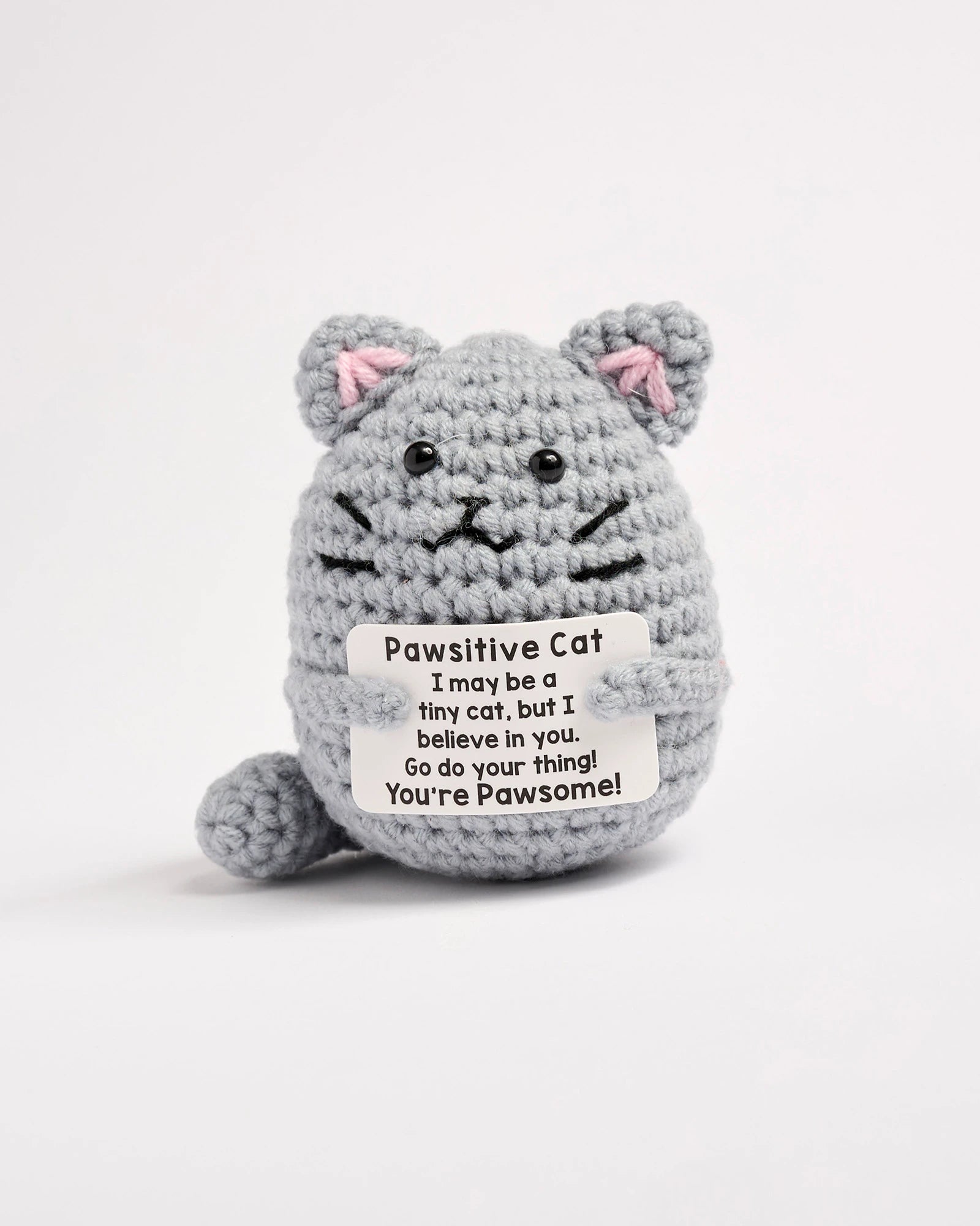 Share a little encouragement with this adorable crochet “Pawsitive Cat” featuring an uplifting quote card that reminds someone they’re pawsome. This inspirational desk decor piece makes the perfect encouragement gift for friends, coworkers, students, teachers, graduates, care packages, and thinking-of-you surprises.